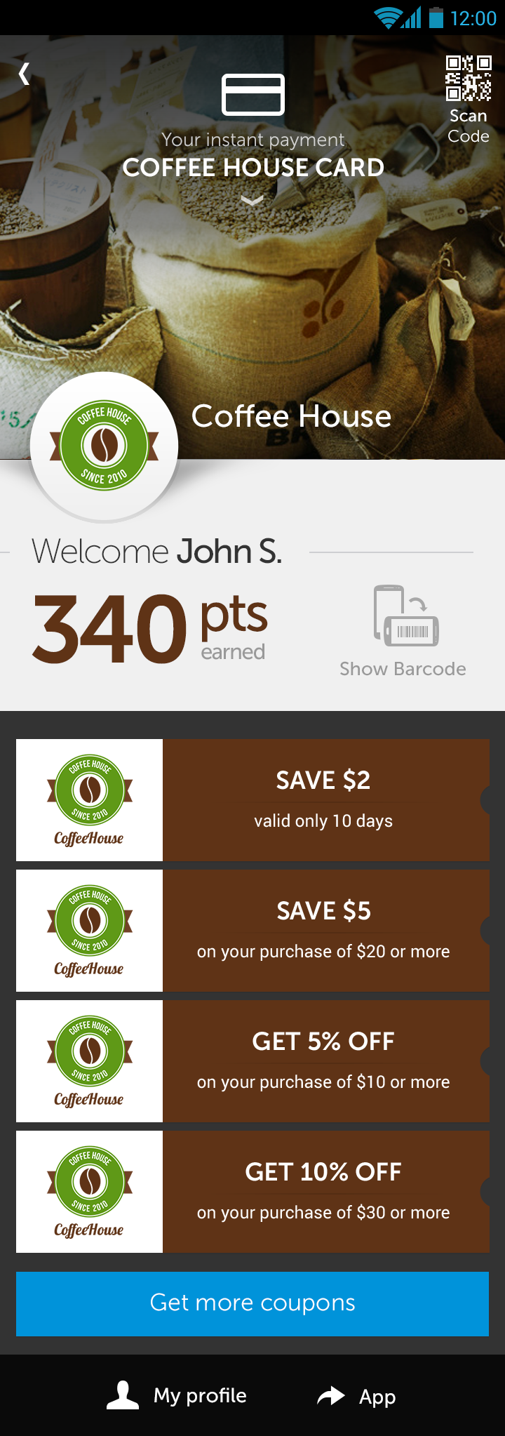 The major design issue was to design an understandable mobile app flexible for different ways of payment (NFC, QR code, pure internet) in the store or at home. With discount voucher for in store situation. And of course the application’s principal goal was to be quick to use and easy to learn.